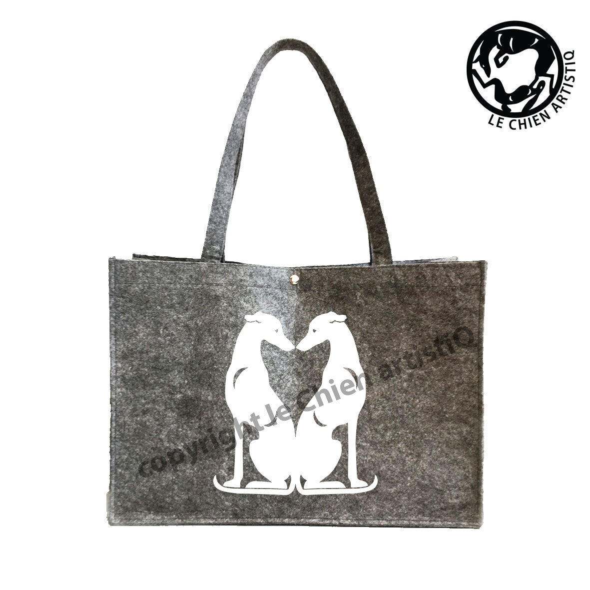 Felt bag Whippet double sitting dog silhouette, LeChienArtistiQ