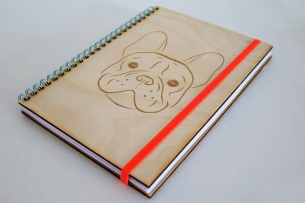 Wooden A5 notebook engraved with French Bulldog dog head