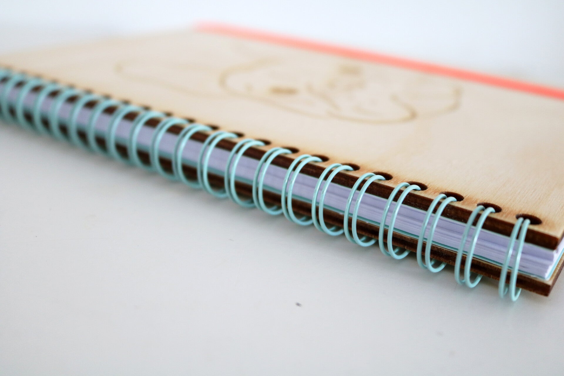 This A5 wooden notebook comes with 160 linked pages, a light blue ring binder and an orange elastic band. On the inside are 2 light blue endpapers, 1 of which is an insert cover. Can be personalized with text.