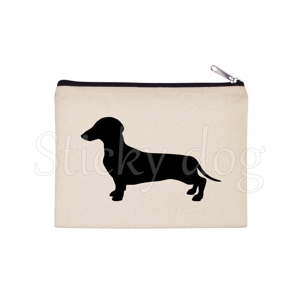 smooth-haired Dachshund - Teckel dog silhouette pencil bag / Beaty case / pouch