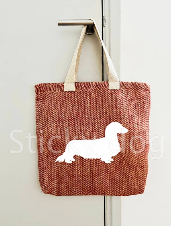 Canvas/jut bag Long-haired Dachshund - Teckel dog silhouette