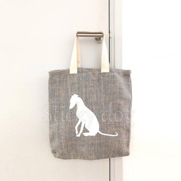 Size 45 x 45 cm (without handles) with print on front, back left blank.