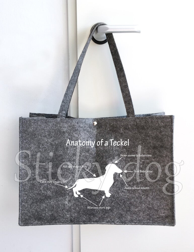 Felt bag smooth-haired Dachshund - Teckel anatomie dog silhouette print