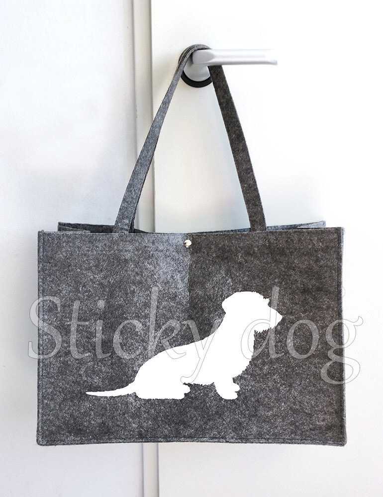 Felt bag Wire-haired Dachshund - Teckel dog sitting silhouette print